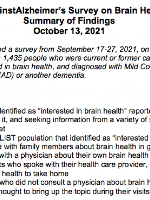 Summary of Findings: UsAgainstAlzheimer’s A-LIST Survey on Medicare (CMS) Coverage Decision February 7, 2022 UsAgainstAlzheimer’s fielded a survey, January 27-February 2, 2022, with responses from 752 people who were diagnosed with Mild Cognitive Impairment (MCI)/Alzheimer’s disease (AD) or another dementia, ‘at risk’ for diagnosis, current/former caregivers and those interested in brain health Key overall findings include: 2/3 of respondents were unaware (43%) or unsure (20%) of the CMS decision Of the group that was aware of the CMS decision, few respondents were able to articulate a full awareness of the implications in an open-ended response; many of those respondents were